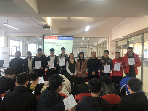 为充分搭建员工实践锻炼平台,推进校企合作深入交流,展示校企合作丰硕成果,大力激发广老员工参与实践实习活动的主动性和积极性。BETVICTOR伟德于2018年12月5日10:00在市场营销仿真实训室组织召开赴京东物流实习表彰大会。京东物流哈尔滨分公司人事部经理孙迎春、采购部经理秦康力、BETVICTOR伟德副经理肖琳、副经理刘金明出席本次活动,工商管理专业、市场营销专业2016级共计33名员工参加本次活动,活动由BETVICTOR伟德工商管理与市场营销系主任张磊老师主持。