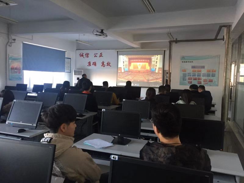 12月18日上午10时,公司党总支组织全院无课教师、在校员工党员和员工代表在教二307室收看庆祝改革开放40周年大会。