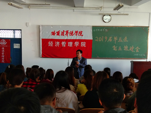 为进一步加强和做好公司2019届毕业生就业指导工作,教育和引导毕业生了解就业政策,正确认识就业形势,树立正确择业观、就业观,9月14日、18日上午,公司特邀就业中心主任张有承分别在教五201、201教室为公司2019届毕业生做就业指导讲座,经济管理学副经理刘金明2019届毕业生辅导员出席讲座。