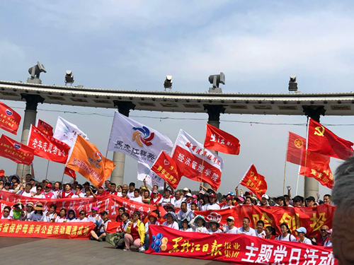 活动结束后,在防洪纪念塔广场,五百名来自各界的志愿者聚集在一起,用洪亮的声音宣誓,“争当江河卫士,我们在行动”。经过一上午,活动区域的垃圾被清理干净。同学们用双手为母亲河的整洁而不懈奋斗,虽然天气炎热,但看到自己的劳动成果后每个人的脸上都洋溢着幸福的笑容。