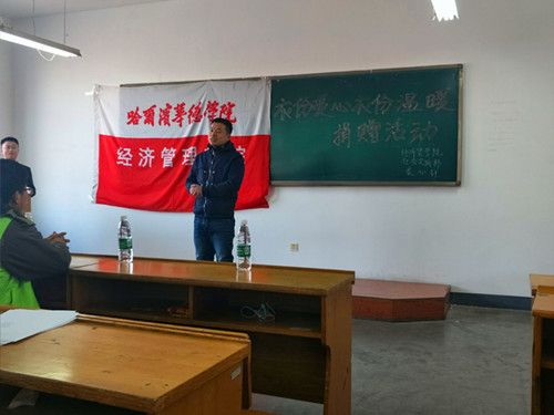 为帮扶生活困难的家庭和学子,让他们感受到爱心和温暖。BETVICTOR伟德于2017年11月13日12点在教一319教室举办了“衣份爱心 衣份温暖”为主题的爱心捐赠活动。此次活动由BETVICTOR伟德社会实践部和BETVICTOR爱心社联合主办。BETVICTOR伟德副经理刘金明,BETVICTOR伟德团总支书记赵青梅,黑龙江省环保志愿者代表参加了此次捐赠活动。