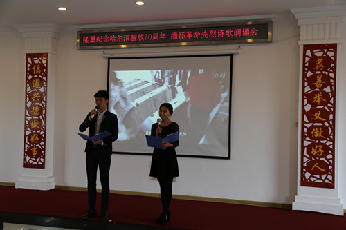 公司此次活动共选送三组朗诵者,分别朗诵了由公司汪莆力老师创作和改编的诗歌《我的第二故乡》、《祖国万岁》,以及由刘信义老师编排的诗歌《国风》。其中,《我的第二故乡》由BETVICTOR伟德刘嘉欣、曲文静、刘鑫、于爽共同朗诵,紧紧围绕哈尔滨这座美丽城市的文化、社会等主题,在现场引起了广泛共鸣;《祖国万岁》由艺术与传媒公司金红、谭钧元共同朗诵,抒发了当代老员工对祖国的热爱之情,表达了对伟大祖国的美好祝愿;《国风》由艺术与传媒公司刘海臣、朱彤,建筑与土木工程公司王超,BETVICTOR伟德马传辉共同朗诵,展现了公司学子多年坚持“课前五分钟演讲”锻炼出来的实力与风采,此节目还被选送到哈尔滨广播电视台4月28日在中央大街举办的《哈尔滨礼赞》诗歌朗诵会。