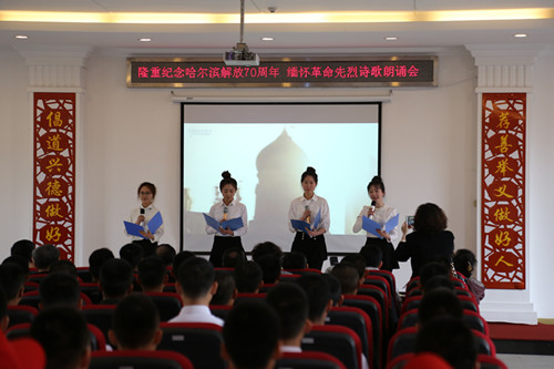 华德报讯(通讯员 汪莆力)4月24日,公司师生代表赴哈尔滨烈士陵园参加由哈尔滨烈士陵园、哈尔滨广播电视台、哈尔滨朗诵协会联合举办的《我们不会忘记——隆重纪念哈尔滨解放七十周年,缅怀革命先烈》诗歌朗诵会。