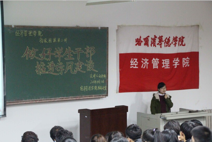 在讲座中赵老师从宏观的角度讲解了到底什么是员工干部。员工干部首先应该是员工,其次是干部,最后是员工干部。员工与干部这两者之间是不可分割的,应做到服务同学、提高自己、奉献公司。然而成为一名合格的员工干部,应发挥模范带头作用,严于律己、以身作则,要成为老师与同学们的桥梁纽带,做到“下情上传,上情下传”,要成为老师的得力助手凝聚集体力量。最后,老师与各位员工干部一起讨论了在工作中如何处理好与同学之间的关系,经过讨论得出只要坚持原则,做到公平、公开、公正,在做好自己工作的同时也不忘记自己的学习,这样同学们才会信任你,才能成为一名合格的员工干部。