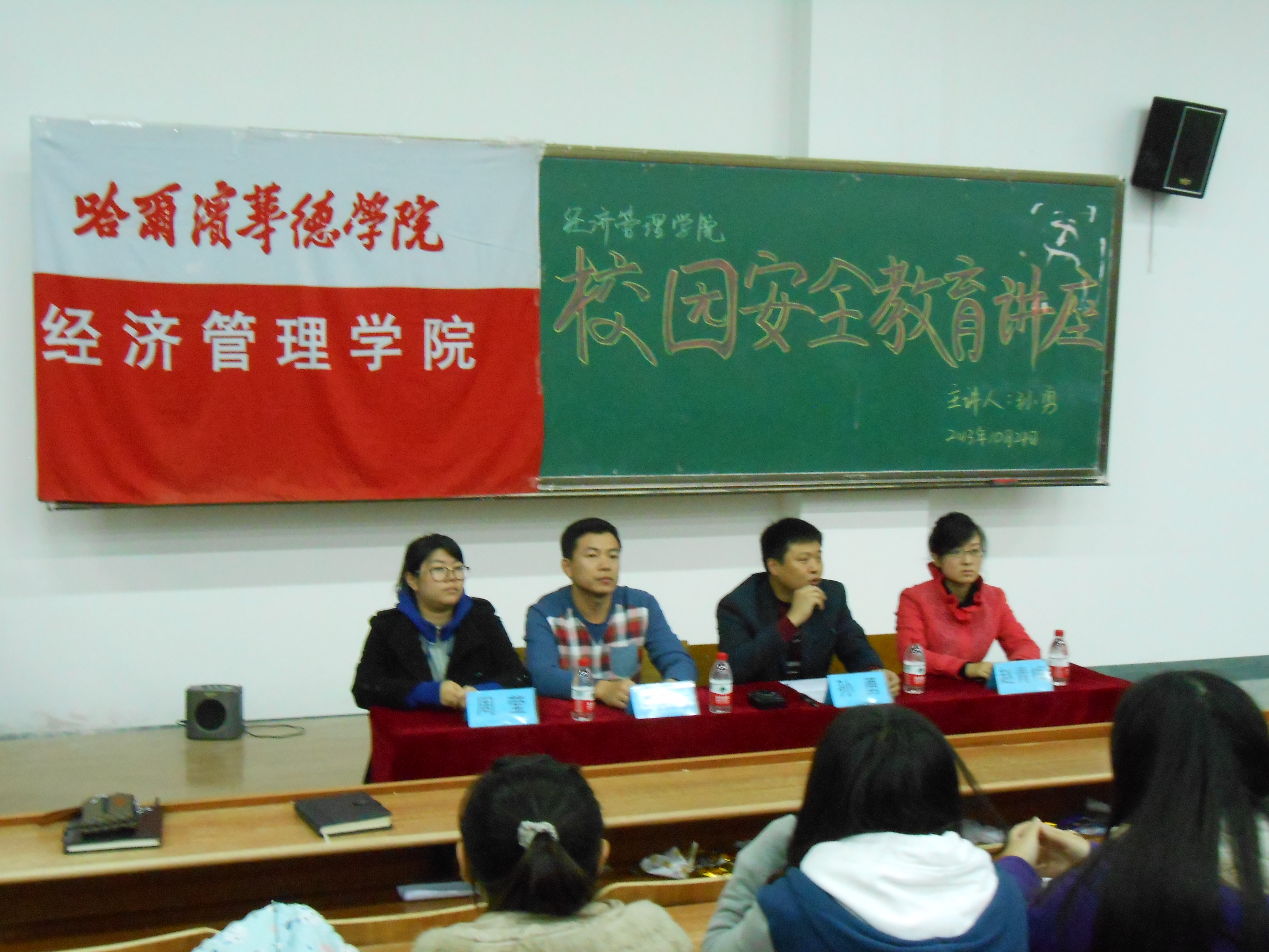 讲座首先由刘金明副经理强调此次活动的目的,希望同学们明确人身及财产安全的重要性。保卫处处长孙勇在讲座中为大家深度解读了人身安全及财产安全的涵义,了解我们身边有哪些安全隐患。接下来通过各种真实事例,从用电安全、吸烟、怎样防止纠纷斗殴、酗酒、宿舍安全五大方面强调校园安全的重要性,并指导员工们如何提升应急技能。最后由赵青梅老师对此次讲座做总结,希望同学们从事例中吸取教训,维护自身安全。