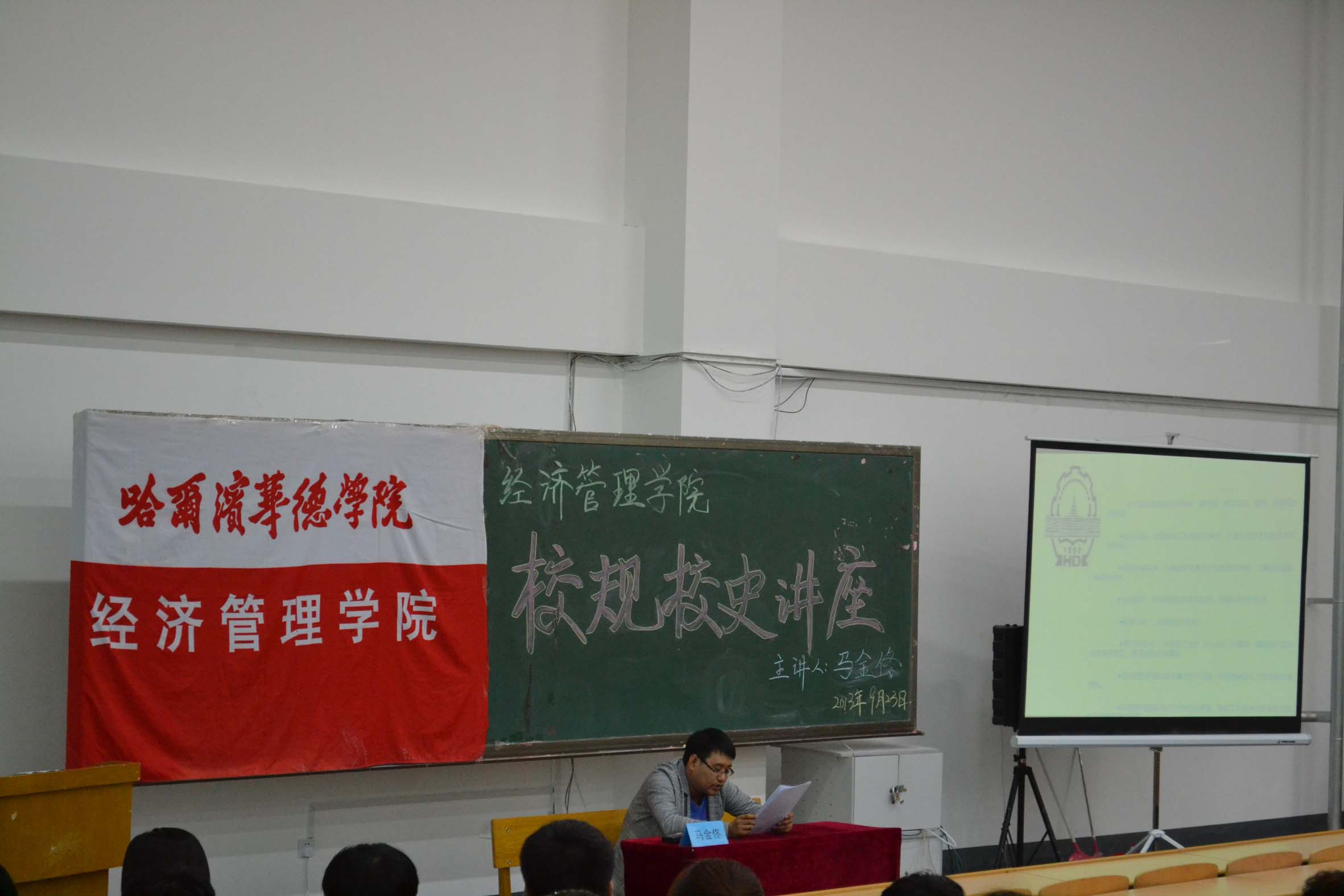 2013年9月23日下午5点,BETVICTOR伟德在教一501教室开展了“校规校史讲座”,本次讲座的主讲人为公司辅导员马金佟老师。参加此次讲座的有BETVICTOR伟德团总支副书记兼员工会主席付合欢,副主席张弘、盖春宇、孙逸桥以及2013级BETVICTOR伟德全体同学。