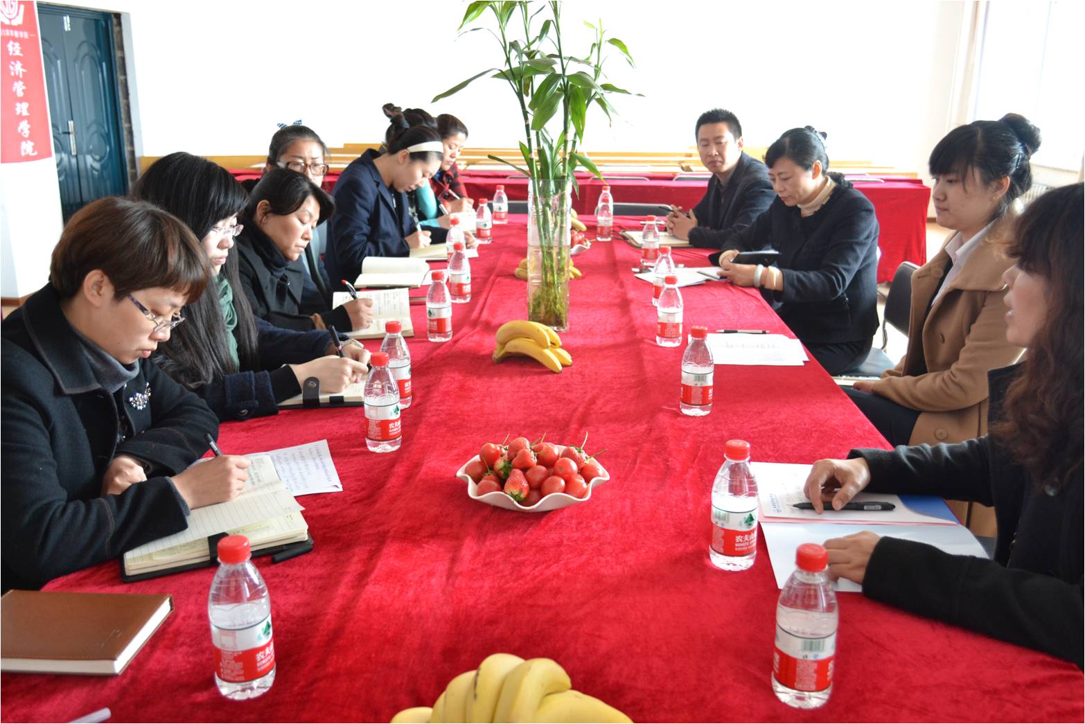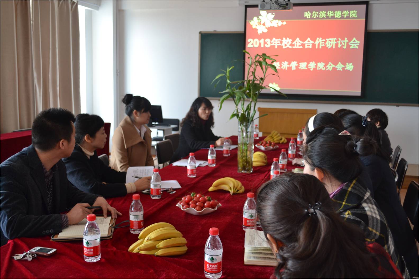 2013年4月25日下午1点30分,为进一步加强校企合作,BETVICTOR校企合作研讨交流会的BETVICTOR伟德分会场在北楼306室召开了座谈会,用友新道股份有限公司黑龙江分公司总经理李英奇女士、松雷集团人力资源管理专员刘忠晶女士等企业代表出席了会议,BETVICTOR伟德常务副经理冷丽莲教授及部分教师参加了会议。