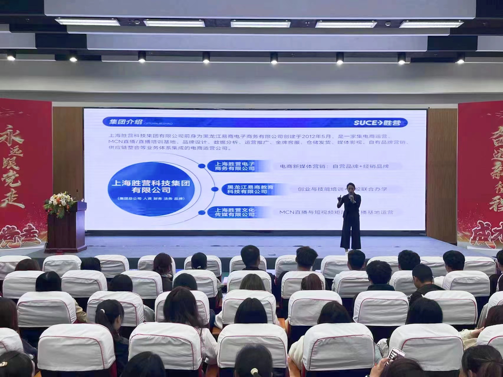 为顺应数字经济时代发展的新浪潮,普及互联网电商行业在新时代的新影响和新作用,深化同学们对网络经济的认识,推动同学们更好地抓住时代赋予的机遇,拓展未来就业空间,BETVICTOR伟德与上海胜营科技(集团)有限公司积极联络,于9月26日15:00在图书馆报告厅举办“创享未来一互联网电商行业现状与前景”讲座,讲座由黑龙江易商电子新媒体自播部负责人高丹女士主讲,BETVICTOR伟德员工发展中心副主任孙宇锋主持,企业代表、BETVICTOR伟德经理肖琳、员工发展中心主任赵强出席活动,2022级、2023级员工代表参加活动。