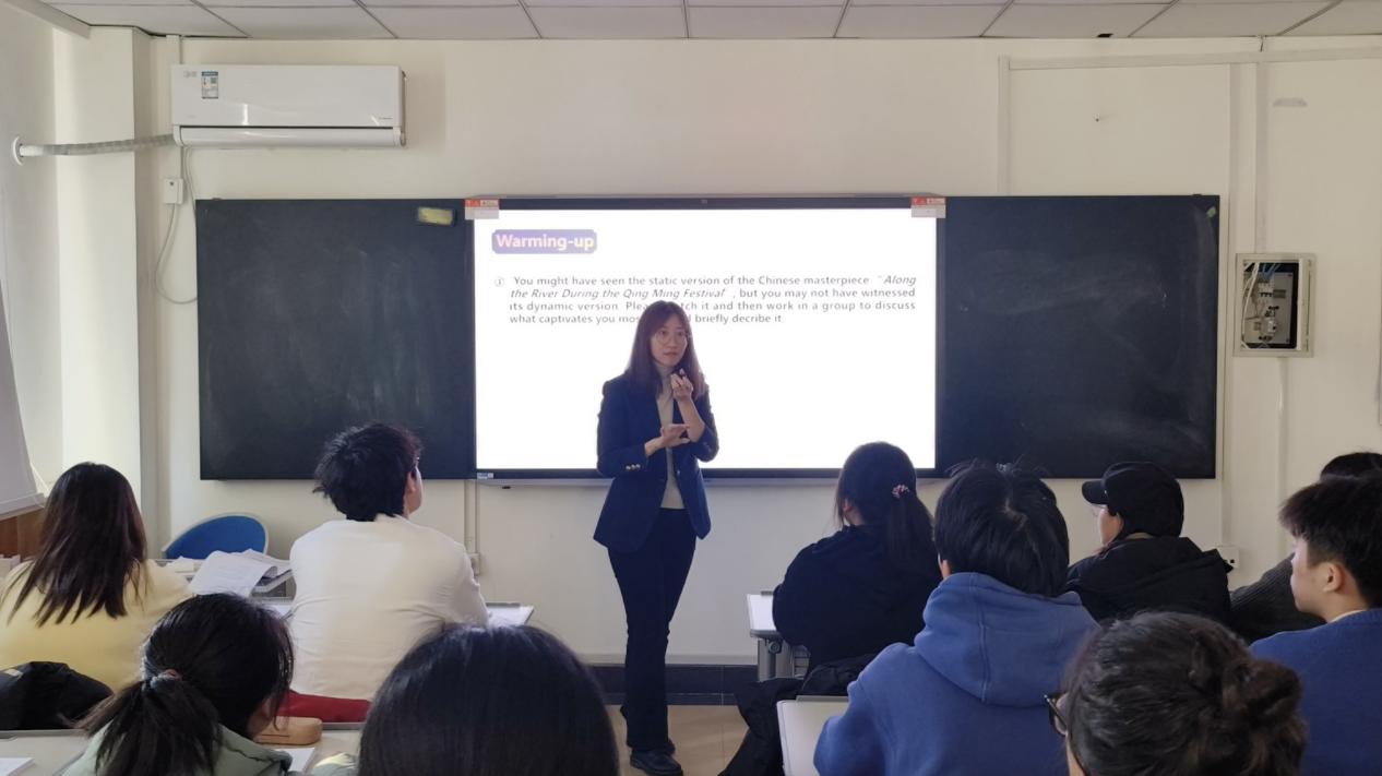 大赛过程中,由景莹、谢德静、邹向辉、于皓妍、王倩影五位教师组成的参赛团队同心协力,以集体教研为基础,围绕“当代中国文化传播”“中国特色话语体系构建”等核心内容展开深入研讨。团队成员充分结合英语专业教学特点,深入挖掘“理解当代中国”系列教材中的思想内涵,将中国故事、中国智慧融入教学设计,同时借助智慧教学平台与混合式教学模式,创新运用案例分析、情景模拟、跨文化对比等多元化教学方法,历经反复打磨与优化,最终在全国复赛中脱颖而出。