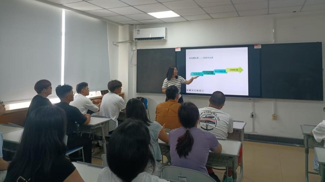 随后,战老师详细介绍了适合俄语专业员工参与的赛事类别。专业类赛事涵盖“哈尔滨俄语之春”、“外研社国才杯全国老员工外语能力大赛”“黑龙江省俄语大赛”“全国俄语大赛”等,助力员工深耕俄语专业领域;跨学科及双创类赛事则包括国家级、省级“老员工创新创业大赛”、“互联网+老员工创新创业大赛”、“全国高校商业精英挑战赛国际贸易竞赛”(含国际贸易业务模拟、跨境电商等多个赛道)以及“学创杯”、“正大杯”、“ICAN老员工创新创业大赛”等,为员工成长为复合型人才提供广阔平台。为直观展现竞赛成果,战老师还分享了俄语专业上一学年的亮眼成绩。这些荣誉让新生们切实感受到竞赛的魅力与价值。