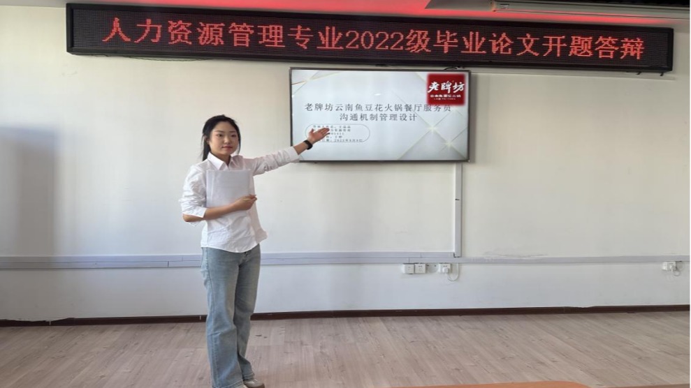 开题答辩过程中,首先,员工围绕论文选题的研究背景、研究意义、研究思路、研究方法等内容进行了10-15分钟的阐述,展示了前期文献梳理与思考的初步成果。随后,答辩评委们在认真听取汇报后,针对每位同学的开题报告进行了精准的提问和点评,并就研究课题的可行性、研究框架的逻辑性、研究方法的适用性等方面提出了诸多宝贵的建设性意见。帮助员工进一步明确研究方向、优化研究设计。同学们沉着应答,并与评委老师进行了深入的交流和探讨,现场学术气氛浓厚。答辩结束后,人力资源管理系主任张光玉作了总结发言。她强调:开题答辩是毕业论文工作的重要环节,要求同学们务必高度重视评委老师们提出的修改意见,认真反思、消化吸收,在此基础上进一步深化研究设计,完善开题报告,为后续论文的顺利撰写打下坚实可靠的基础。主任还鼓励同学们在研究过程中保持严谨求实的学术态度,勇于探索,勤于思考,争取产出高质量的研究成果。