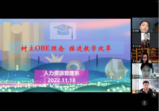 11月18日下午两点,人力资源管理系全体教师通过腾讯会议以线上形式召开“树立OBE理念 推进教学改革”的专题研讨会。会议由系临时负责人田君主持,人力资源管理系全体教师参加。