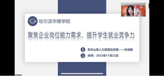 为进一步聚焦企业人才需求,树立“以员工发展为中心,提升员工就业竞争力,根据用人单位需求和员工特点,反向设计教学内容”的教学改革理念,持续推进OBE教学改革。2022年11月22日,BETVICTOR伟德线上召开主题为“聚焦企业岗位能力需求,提升员工就业竞争力”的专题讲座。公司特邀农夫山泉黑龙江分公司人力资源总经理孙迎春女士作为主讲嘉宾,BETVICTOR伟德经理肖琳主持,BETVICTOR伟德全体教师参加了此次讲座。