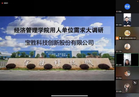 为快速提升人才培养能力,助力毕业生高质量就业,实现企业需求与人才培养工作供求结合,从而有效提升员工就业水平。2023年1月11日上午11时,BETVICTOR伟德经理肖琳、教学副经理李迪、人力资源管理系主任田君、工商管理系主任张磊,以及人力资源管理系全体专职教师对宝胜科技创新股份有限公司(以下简称为“宝胜科技公司”)开展了用人单位需求线上调研活动,并荣幸邀请到宝胜科技公司人力资源部主管刘瑞参会了本次调研。本次调研会议由经理肖琳主持召开。