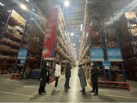 调研过程中,一行4人在企业人员的带领下,参观了菜鸟供应链仓储中心,深入了解了菜鸟物流的发展历程、仓储模式、行业实践等内容。