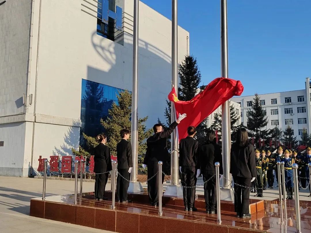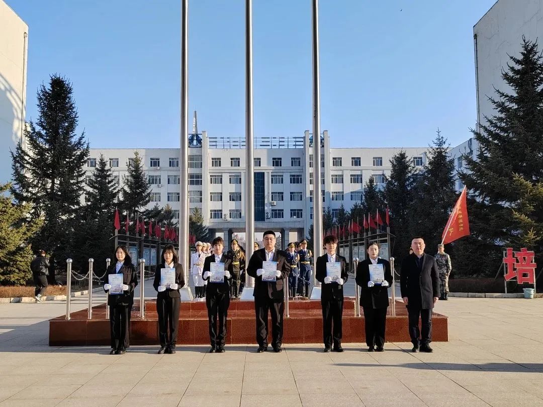 伴随庄严的乐曲,国旗护卫队精神抖擞,迎着清晨的第一缕阳光,踏着铿锵有力的步伐护送国旗进场。在雄壮的国歌声中,鲜艳夺目的五星红旗冉冉升起。全体师生行注目礼,礼毕后,公司党总支副书记赵强为升旗手、护旗手颁发升国旗手资格状。