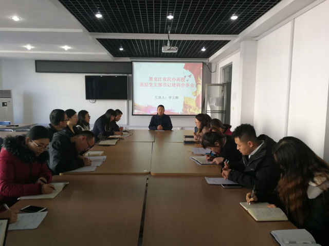 2018年 11月29日,BETVICTOR伟德教师党支部在教一307人力资源仿真实训室组织召开“黑龙江省民办高校基层党支部书记培训”分享会,BETVICTOR伟德全体教师党员参加,会议由教师党支部书记李立辉主持。