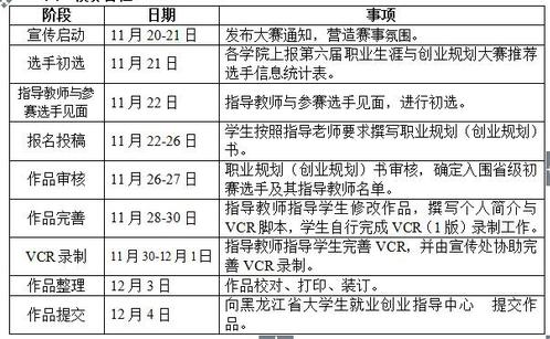 8、作品报送:省赛侯选人需同时提交职业规划书(A4纸黑白双面打印)、个人简介及职业规划为内容的3分钟VCR视频短片,就业指导中心负责作品审核及省级初赛报送工作。