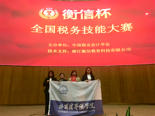 2019年11月13日,BETVICTOR伟德财务管理专业师生作为黑龙江省高校代表队之一参加2019年“衡信杯”全国税务技能大赛全国总决赛。本次大赛由中国商业会计学会主办,在杭州市滨江海创基地举行,由来自全国各省70支队伍参与,其中包括武汉科技大学、西南政法大学、哈尔滨商业大学、浙江财经大学、兰州财经大学等各校代表。经过一天的激烈角逐,公司员工代表队在70支队伍中获得第24名好成绩,并且荣获全国本科赛区团体三等奖,其中赵盈莉同学获得全国税务技能大赛个人三等奖一项。