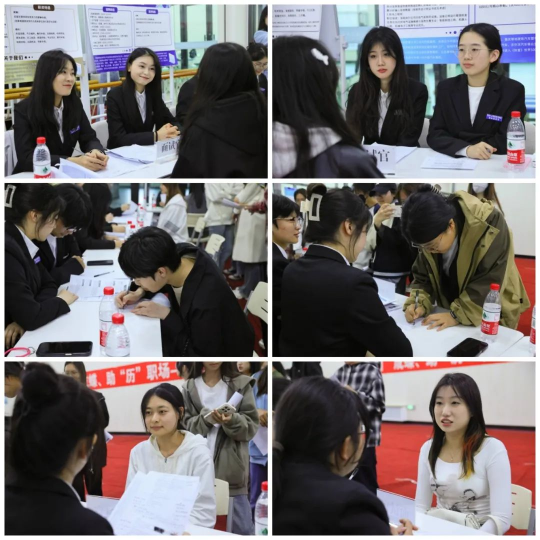 模拟招聘会期间的面试官由公司人力资源管理协会全体成员担任。面试官们严格履行职责,细致审阅应聘者的简历,通过提问、观察和倾听等面试技巧,全面了解应聘者的经验、潜能和职业态度等,严谨评估其专业技能,并为其提供建设性建议,促使应聘者在模拟面试中发现自身短板,并针对性地加以改进。