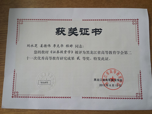 2015年荣获高等教育学会第二十一次优秀高等教育研究成果二等奖