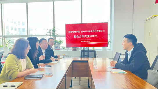 随后,温州果季农业科技有限公司人力资源经理杨扬钏分享了公司的创业历程、发展状况、用人需求、服务功能以及产教融合的成功案例。他表示,对未来与公司深化合作抱有强烈的期待。未来,公司与企业将在产学研落地、员工实习实践、专业群建设等多个方向展开紧密合作。此次合作将打破高校与企业之间的人才培养界限,进一步搭建起高校与企业间的沟通桥梁。